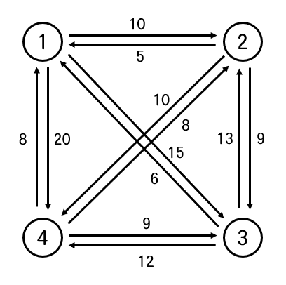 예를 들어, 마지막으로 방문한 도시가 4번 도시라면 4번 도시 -> 1번 도시로 가야 하므로 이 때의 비용은 8이 되므로 8을 반환한다.