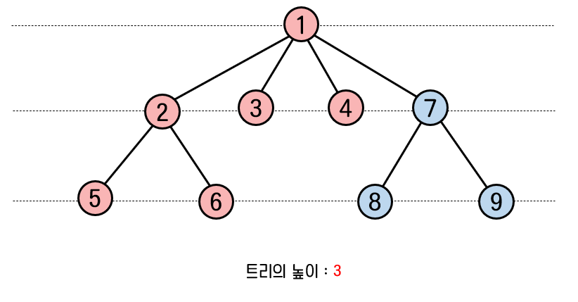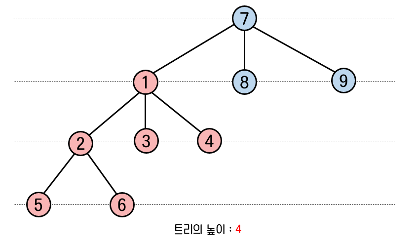 7번 노드가 1번 노드의 자식 노드로 들어감에 따라 전체 트리의 높이는 3이 되었다.