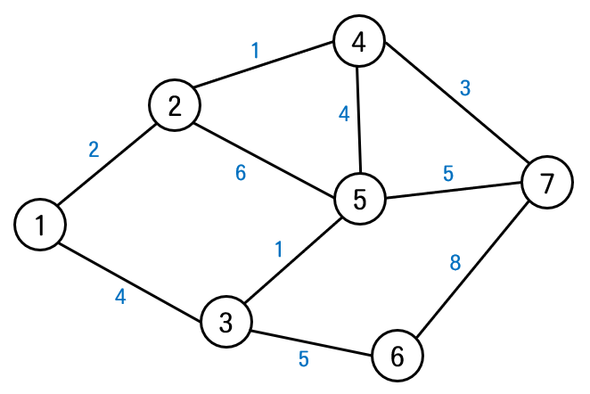그래프에 N개의 노드가 있으면, N x N 이차원 행렬을 만들어서 노드와 노드 사이의 간선 가중치를 담는 방식이다. 그래프가 무방향 그래프이고, i노드와 j노드가 연결되어 있으며 둘 사이의 간선의 가중치가 w인 경우, graph[i][j] = graph[j][i] = w 로 나타낼 수 있다.
