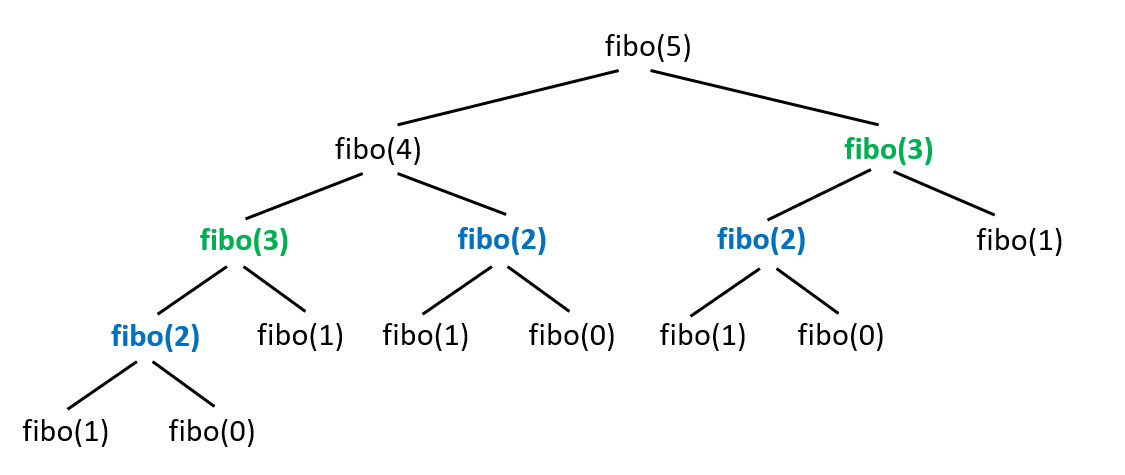 이런식으로 fibo(10)을 구하기 위해서 동일한 재귀함수를 여러 번 호출하게 되는데,