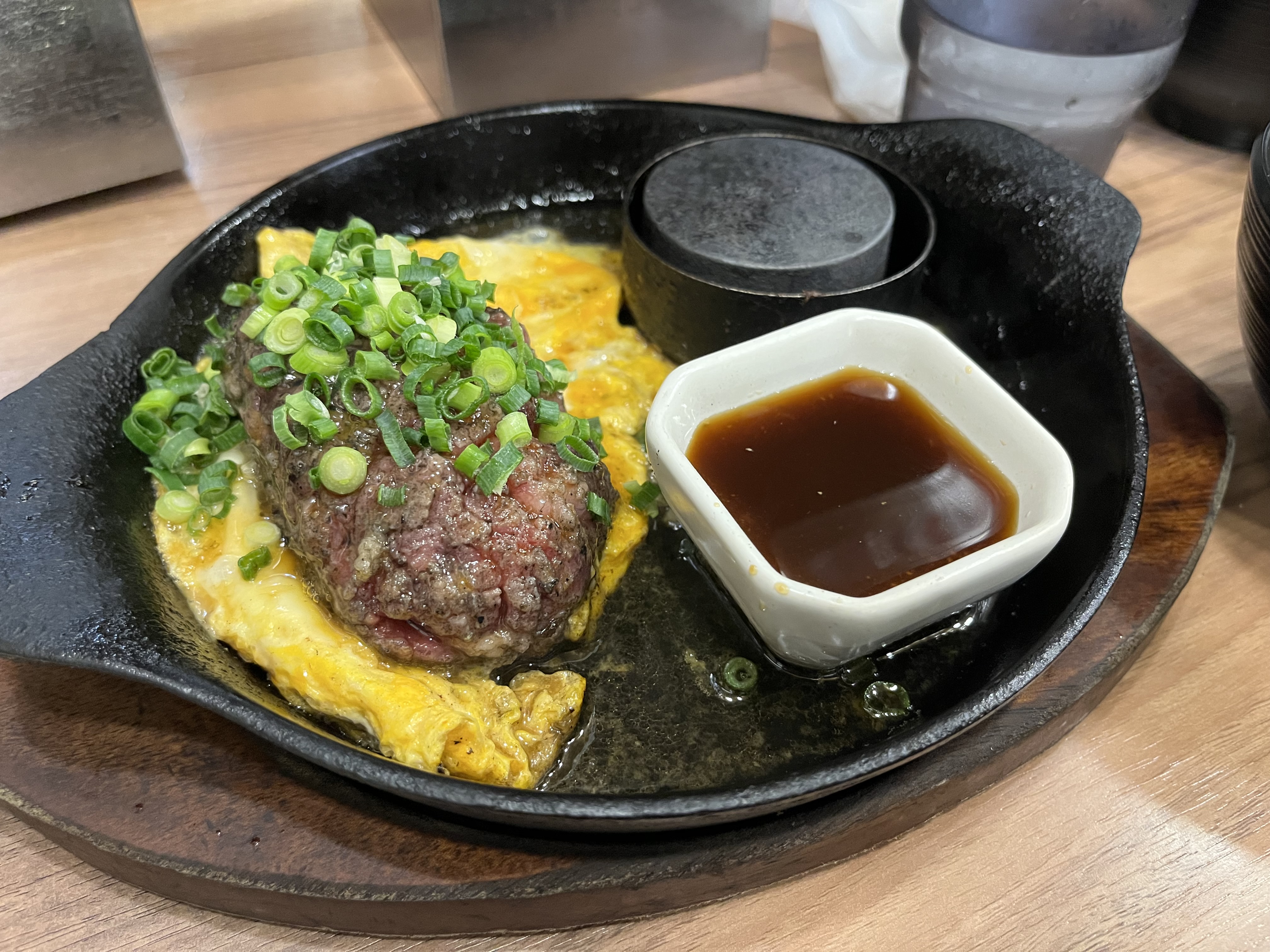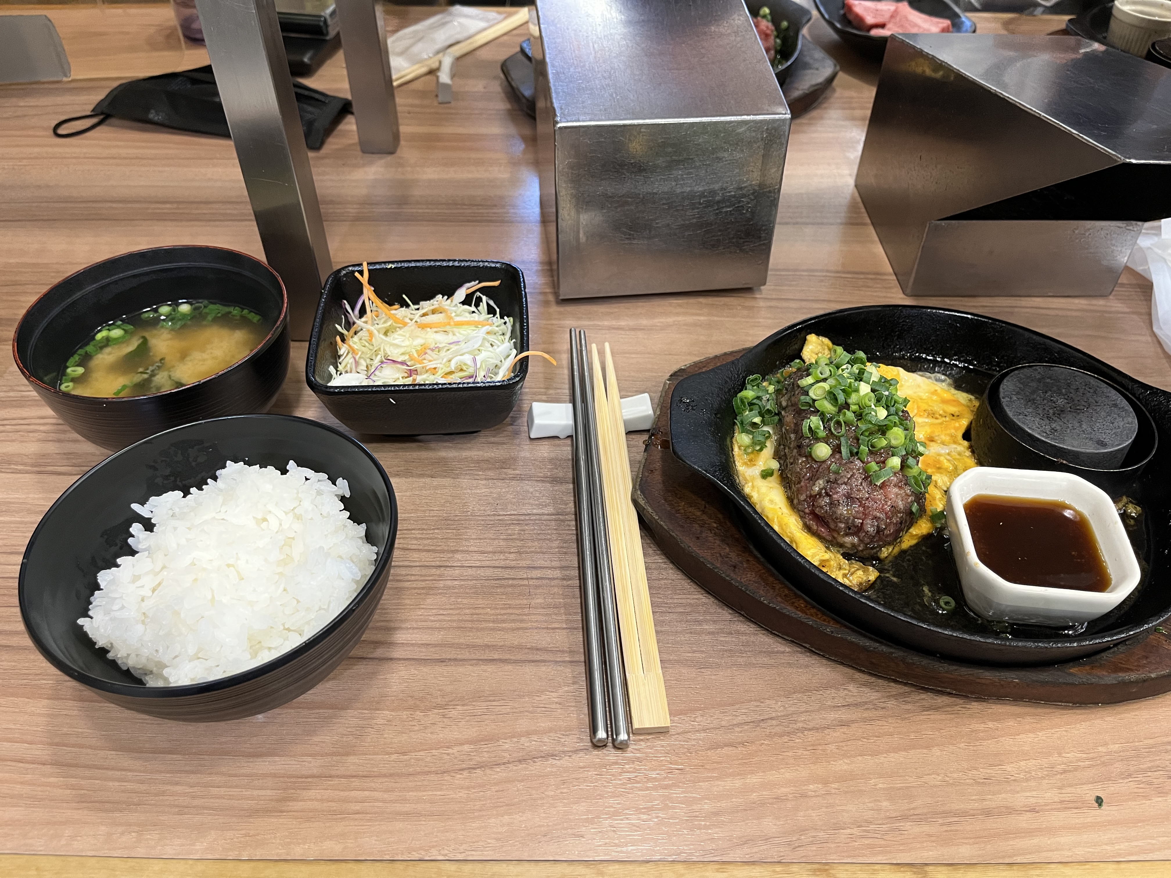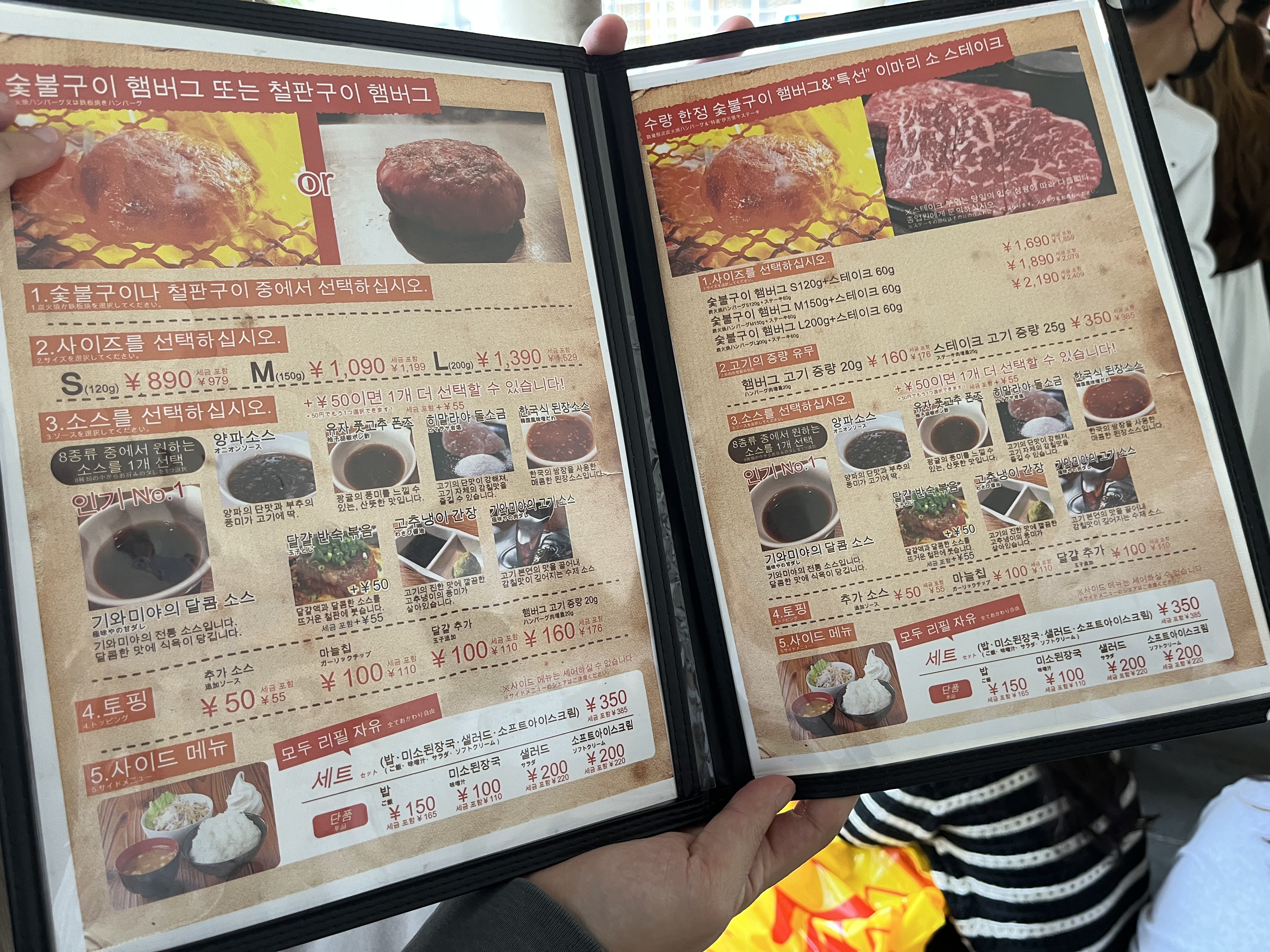 숯불구이 함바그 + 사이즈 M + 기와미야의 달콤 소스 + 소프트아이스크림