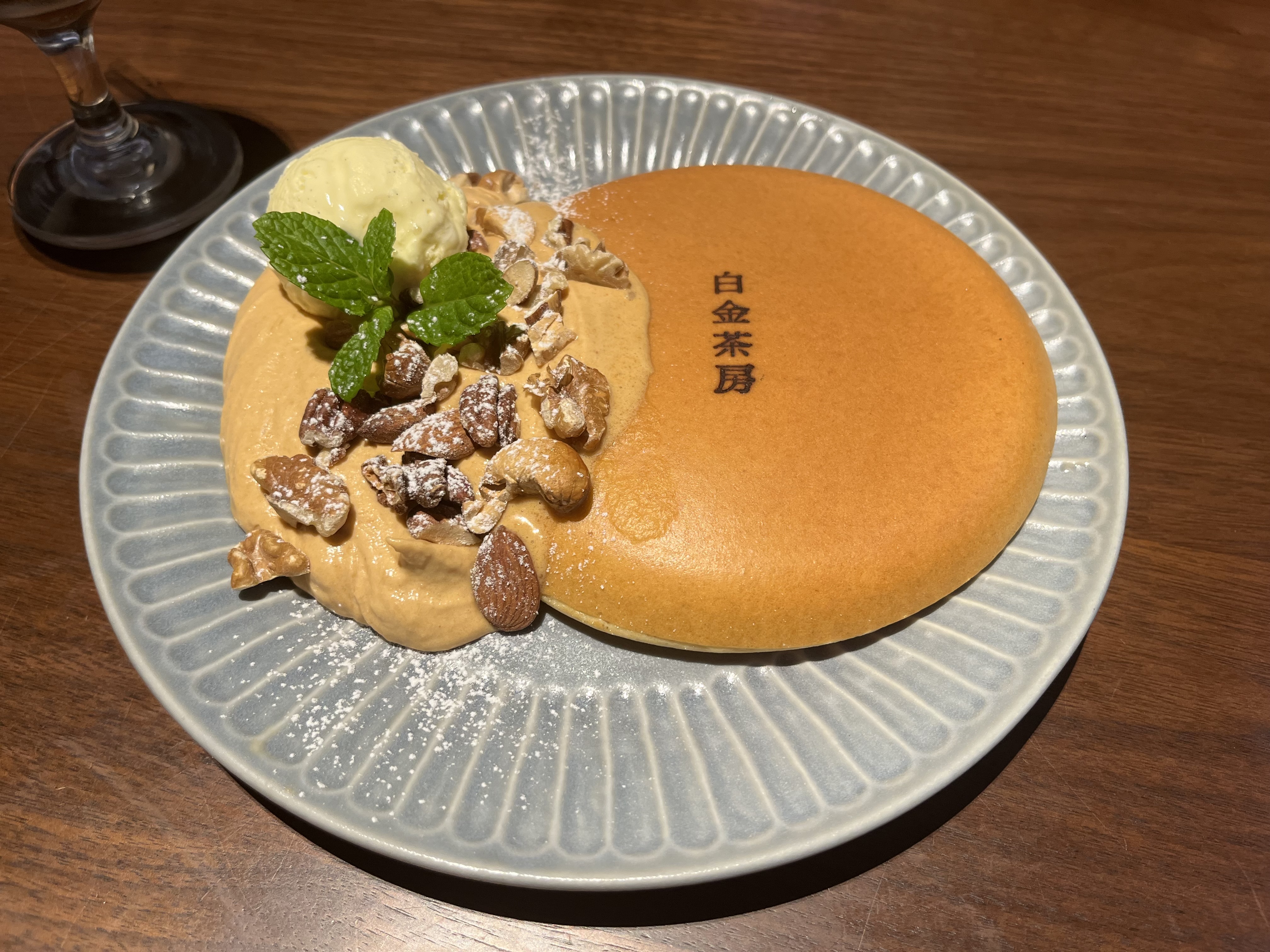 팬케이크 위해 한자로 '백금다방' 이라고 찍혀있다.