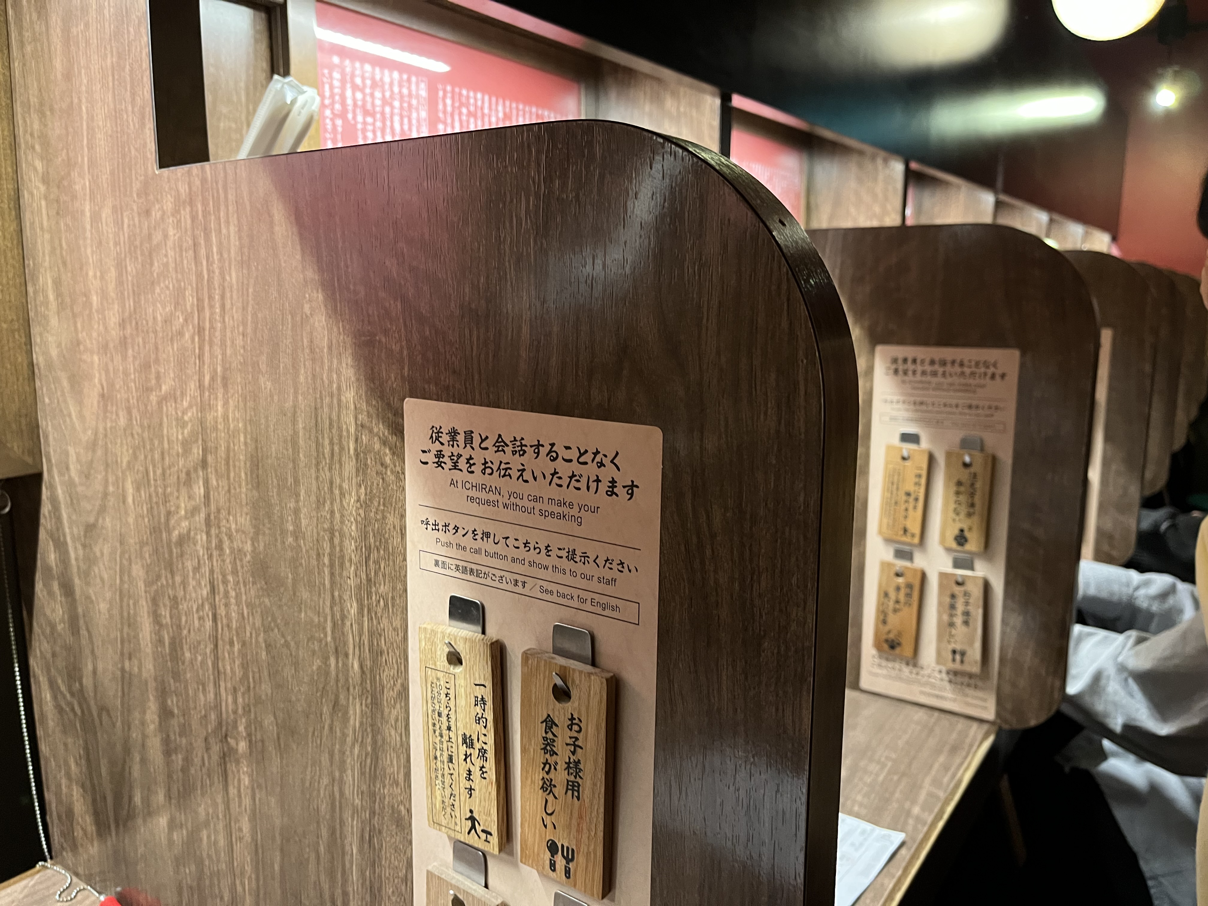 내부는 이렇게 독서실처럼 각 자리마다 칸막이가 있다. 이미 다른 손님들이 조용히 식사하고 있었기 때문에 내부 전체 사진은 찍지 못했는데 이렇게 양 옆으로 벽을 따라 개인 식사자리가 일렬로 마련되어 있다.