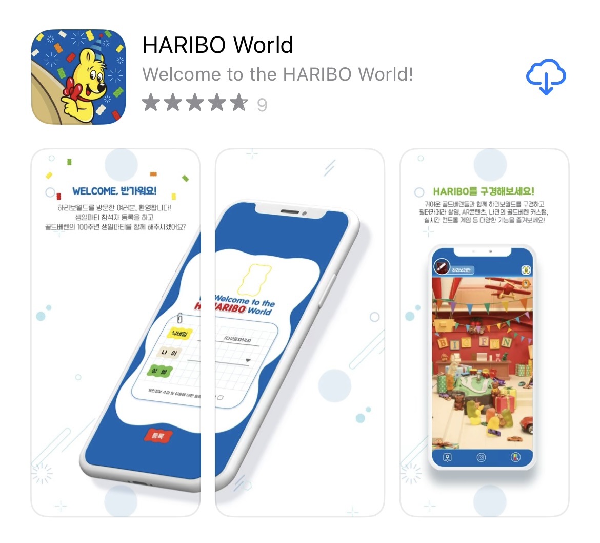 앱스토어에 HARIBO World 라는 앱을 미리 깔고 입장하면, 전시를 좀 더 풍성하게 즐길 수 있다고 하여 미리 설치했다.