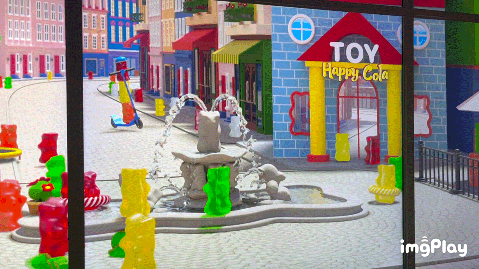 벽면에 신비로운 장면들에 하리보들이 막 돌아다니면서 공룡젤리도 피해다니고 사다리도 올라가고 하는데, 하리보들이 너무 하찮고 귀여워서 계속 구경했다. 나름 스토리도 있어서 가만히 보다보면 웃음도 나온다.