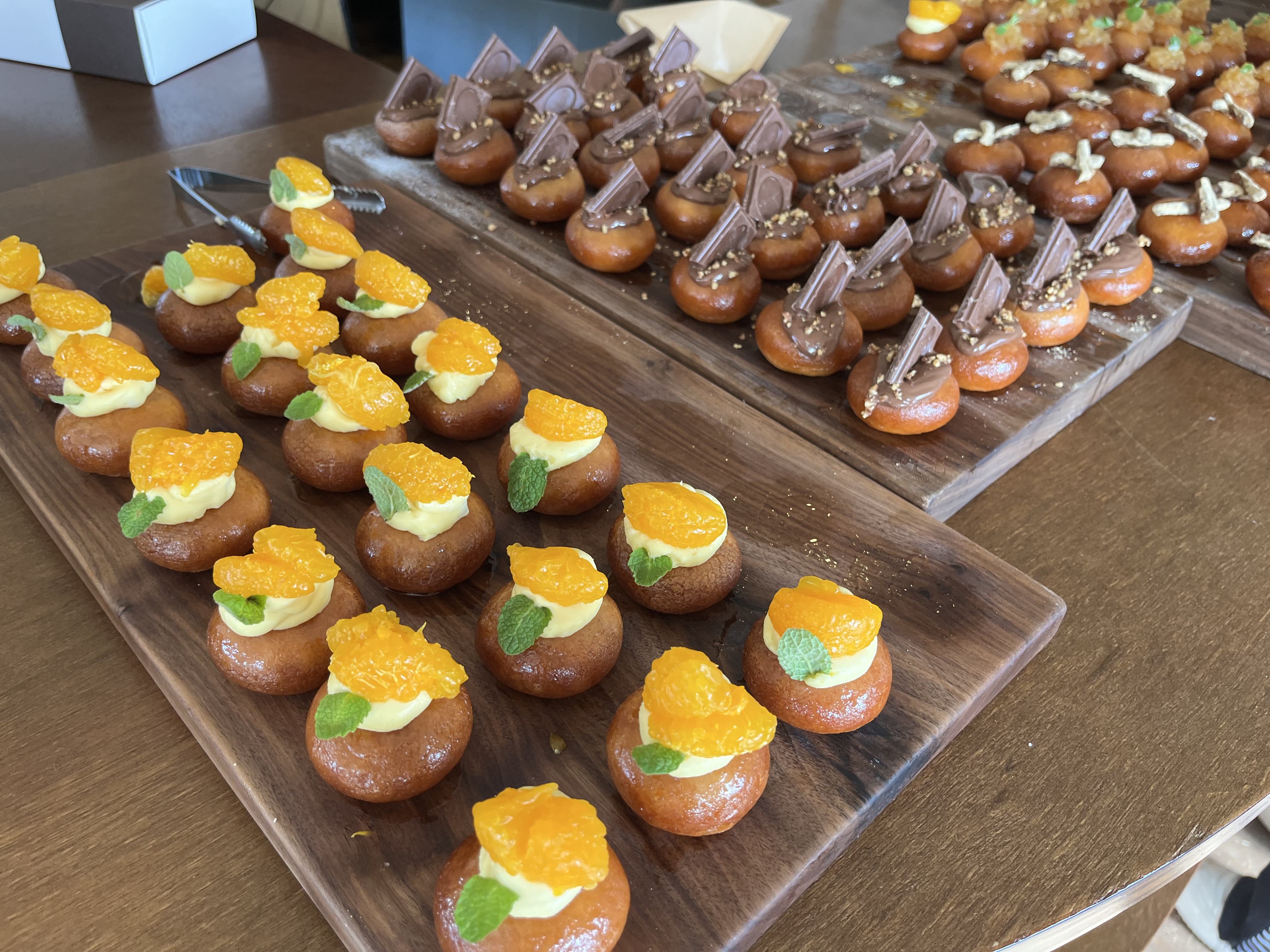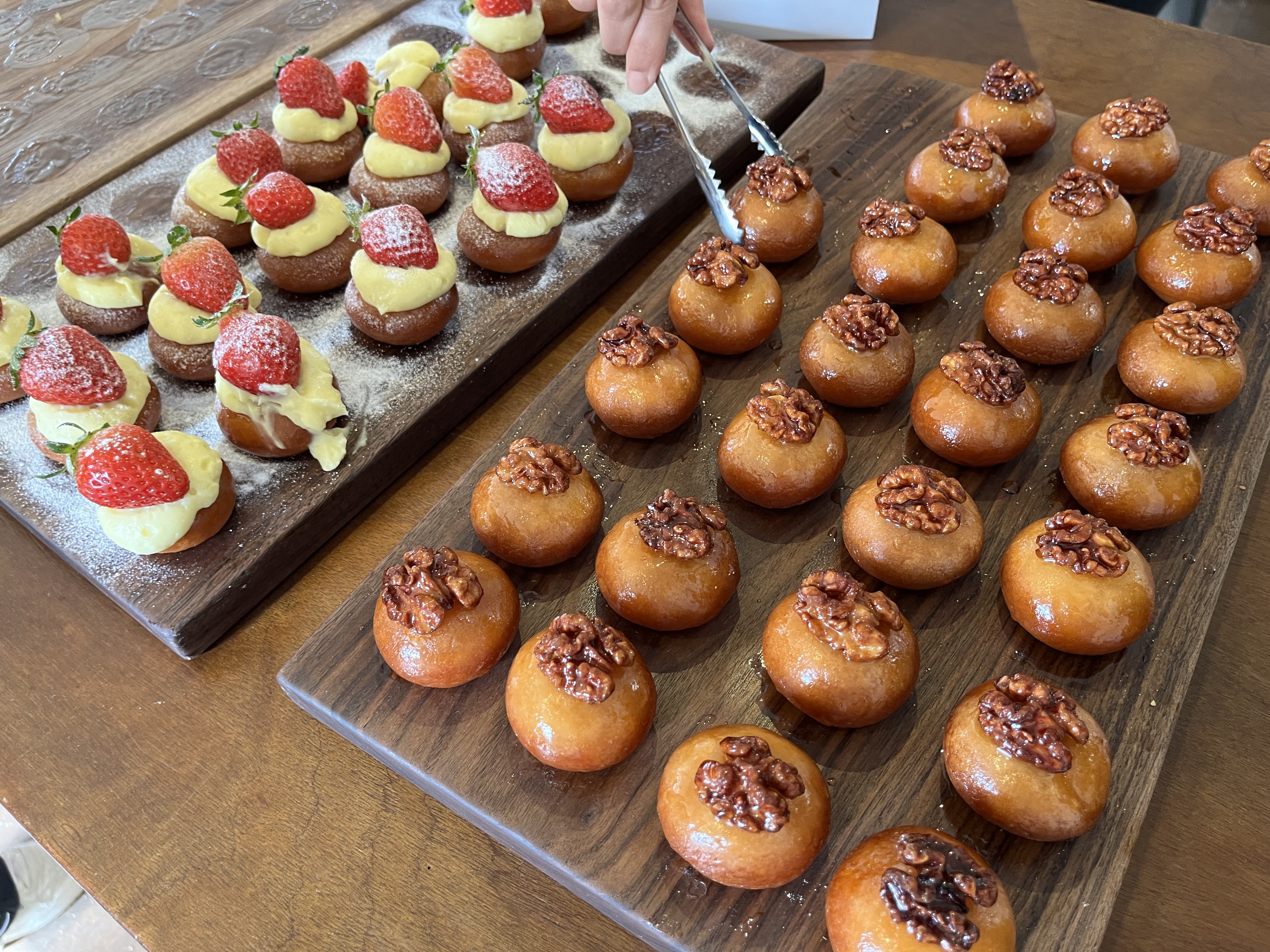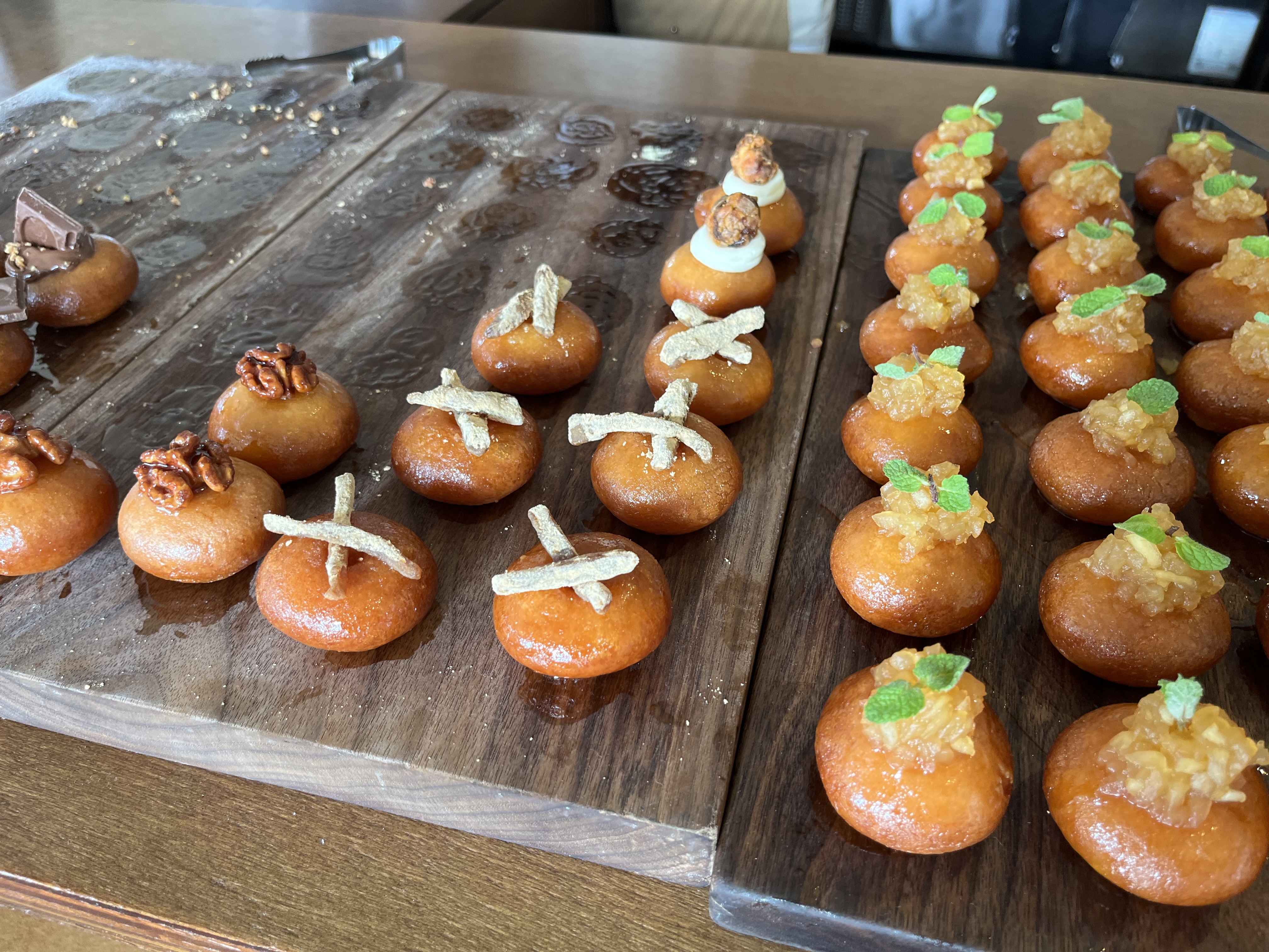먹기 전 겉보기에는 약과랑 비슷한 맛이라고 생각했다. 직접 먹어보니 약과보다는 밀도가 좀 낮지만 맛은 비슷했다. 겉은 꾸덕꾸덕하고 속은 까눌레 안처럼 폭신폭신하고 촉촉한 느낌이다. 오래 먹으면 약간 달아서 물릴 수도 있겠지만 너무 맛있었다. 둘이서 3개 먹으니 딱 적당한 느낌? 누텔라는 내 기준 좀 많이 달았는데, 개성주악 자체도 달달한 편인데 거기에 더해 단 맛의 극강인 누텔라까지 더해져서 그런 것 같다. 오히려 위에 얹어진 토핑보다도 개성주악 자체만 먹어도 충분히 맛있어서 다음에는 기본을 시켜도 괜찮을 것 같다.