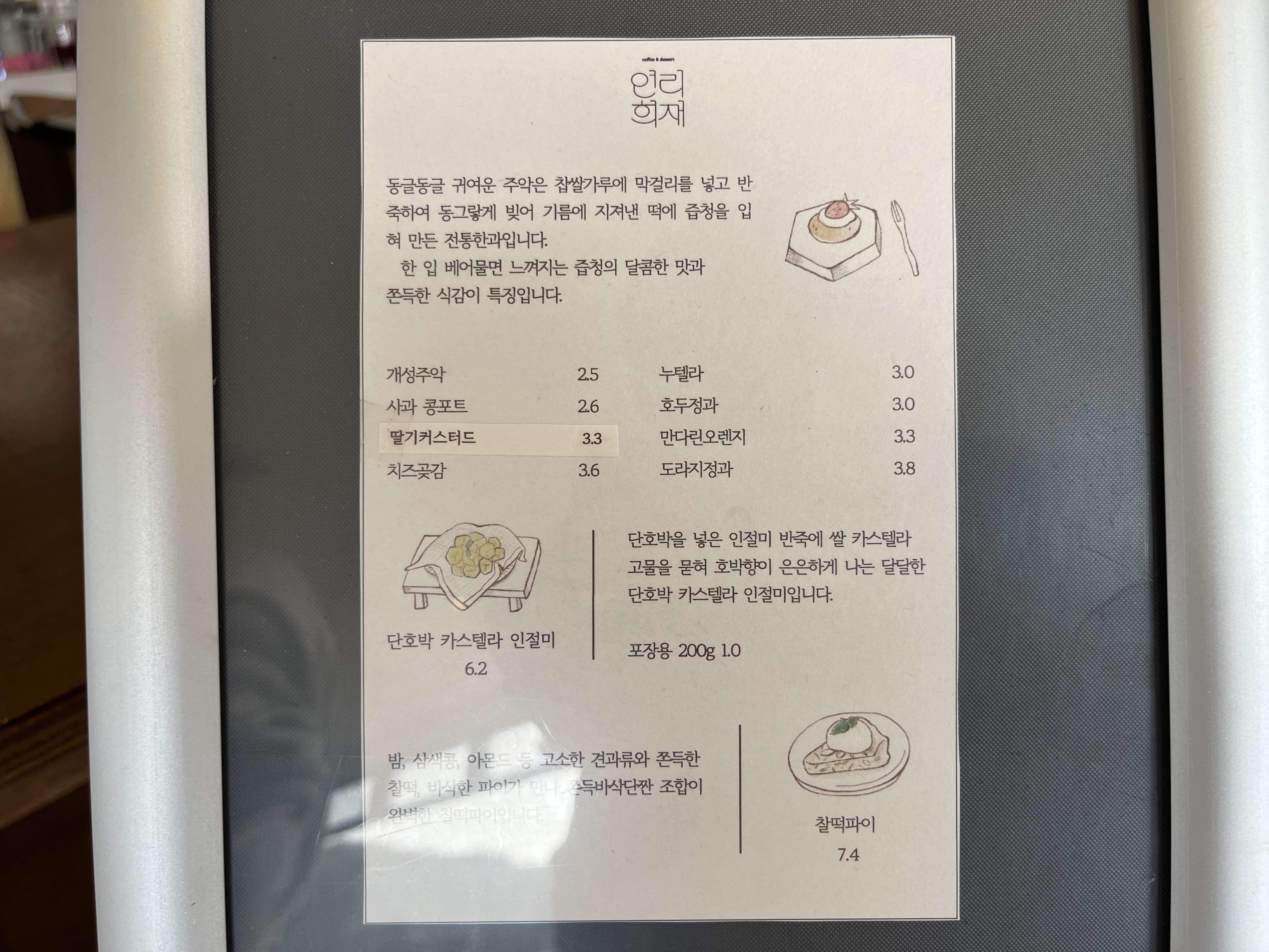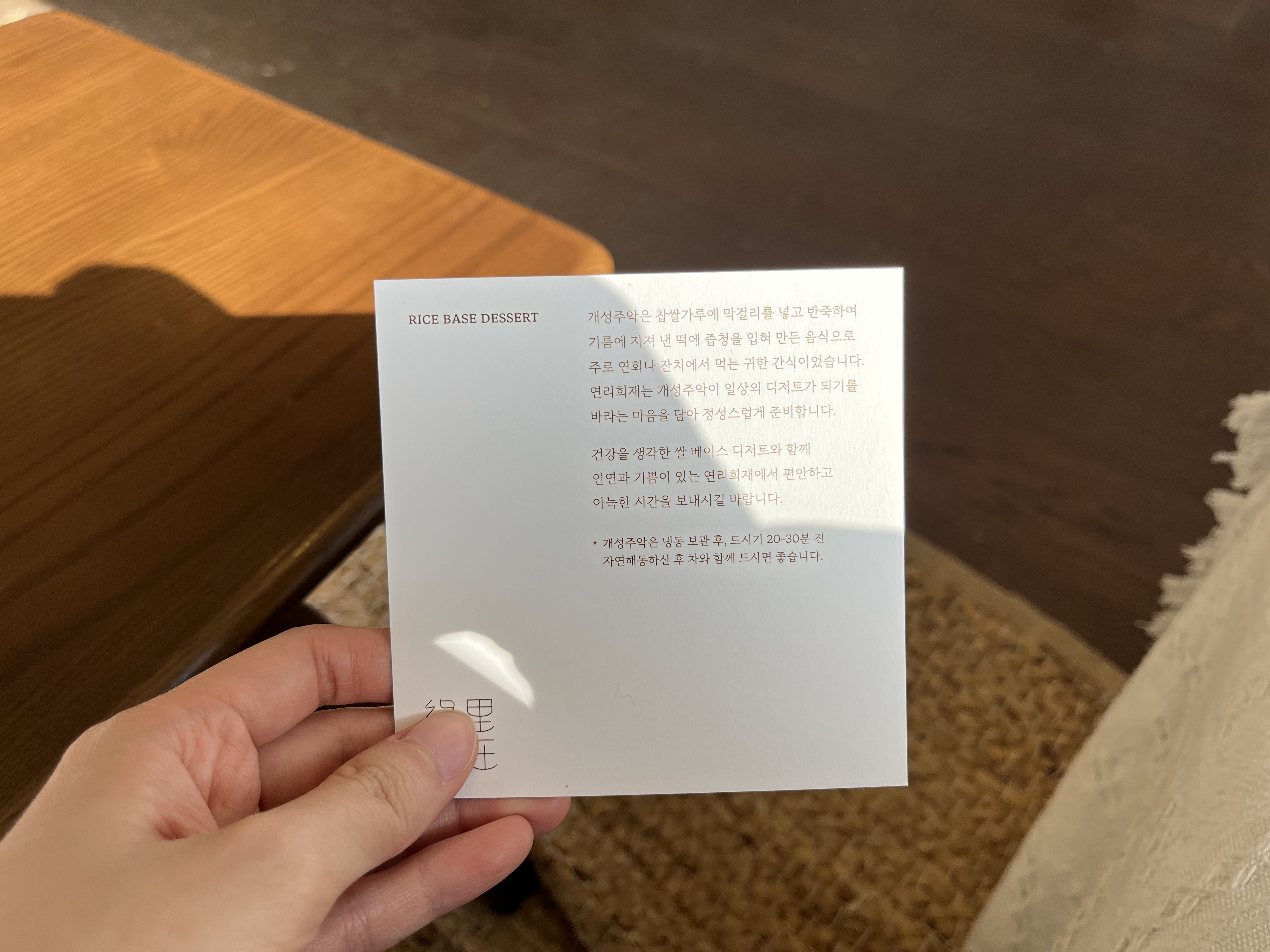 개인적으로 식당이나 카페에 오면 그 음식에 대한 간단한 설명이 담긴 종이를 받는 걸 좋아한다. 어딘지 모르게 정성스럽기도 하고, 어떤 음식인지 알고 먹는 것과 모르고 먹는 것의 차이가 큰 것 같다.