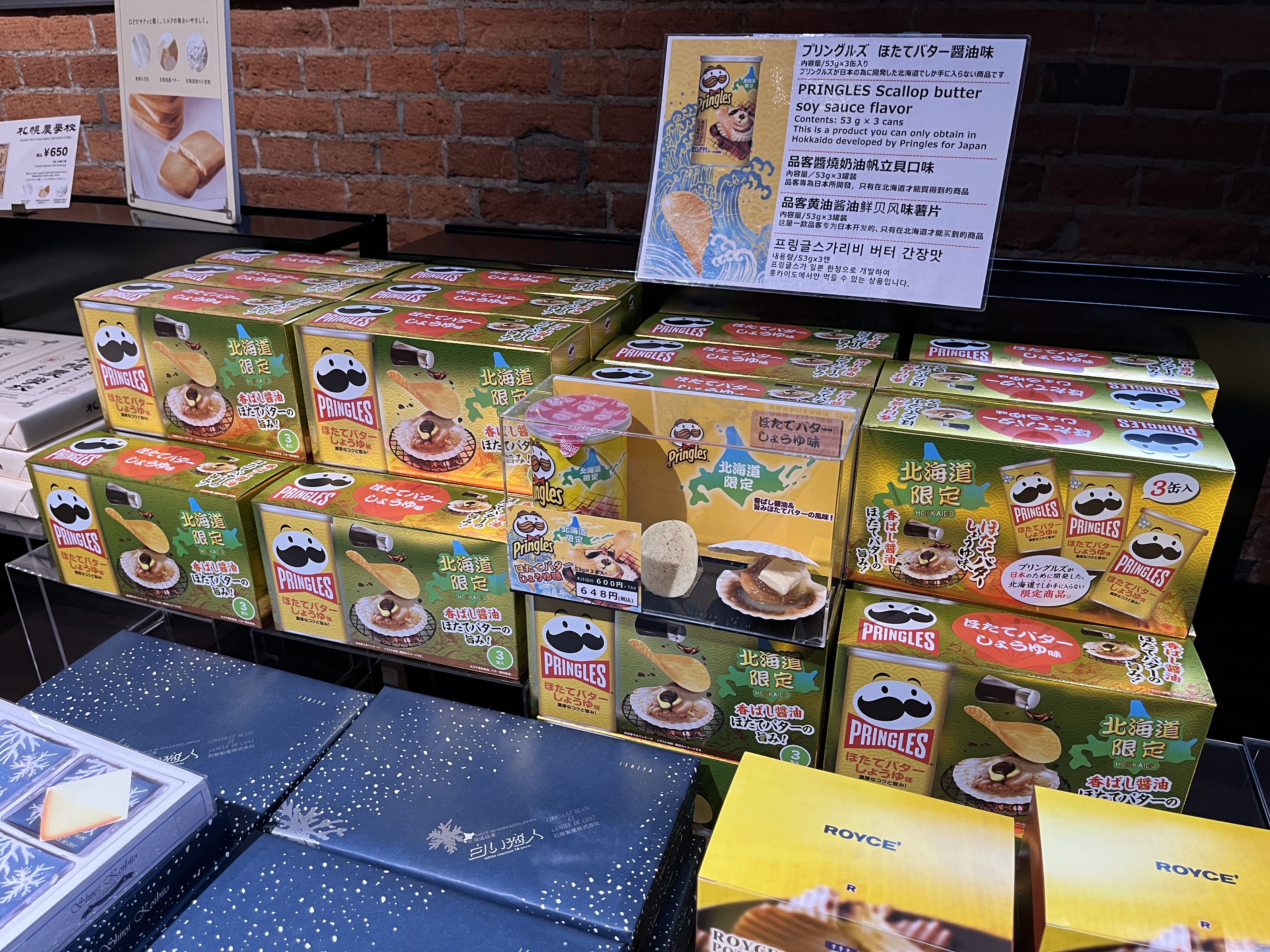 일본 공항 면세점에서 볼 수 있는 유명한 쿠키들도 판매하고 있었다. 정작 내 눈에 띄었던 건 '가리비'맛 프링글스였다. 아니 '가리비'맛이라니. 어떻게하면 과자에서 가리비 맛이 나오지? 정말 궁금해서 참을 수가 없었다. '나 좀 사줘'라고 하듯 번쩍번쩍한 외관으로 대량 진열되어 있어서 더 궁금했던 것 같다. 결국, 친구들과 숙소에서 나눠먹기로 하고 하나를 샀다. 숙소에서 먹어보니 진짜 가리비 맛이 났다. 프링글스 특유의 그 짠맛 속에서도 조개맛이 났다는게 신기했다. (반전으로, 나는 사실 조개류를 못 먹는다고 하니 과자 구매에 제일 적극적이었던 나와 너무 대조되어 친구들에게 웃음을 선사했다.)