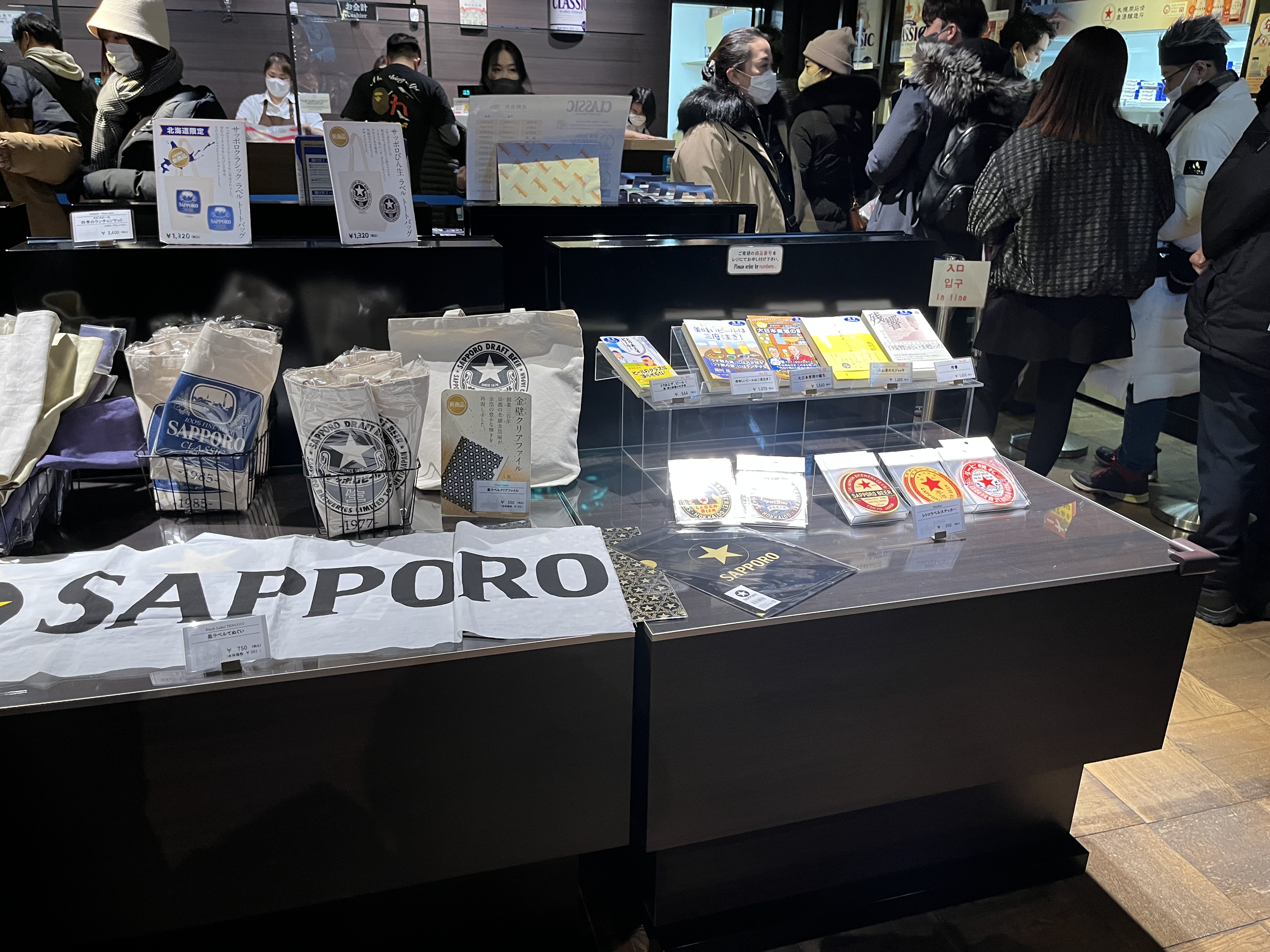 삿포로 맥주 로고가 들어간 스티커, 에코백, 책 등등.. 다양한 굿즈를 판매하고 있어서 보는 재미가 쏠쏠했다.
