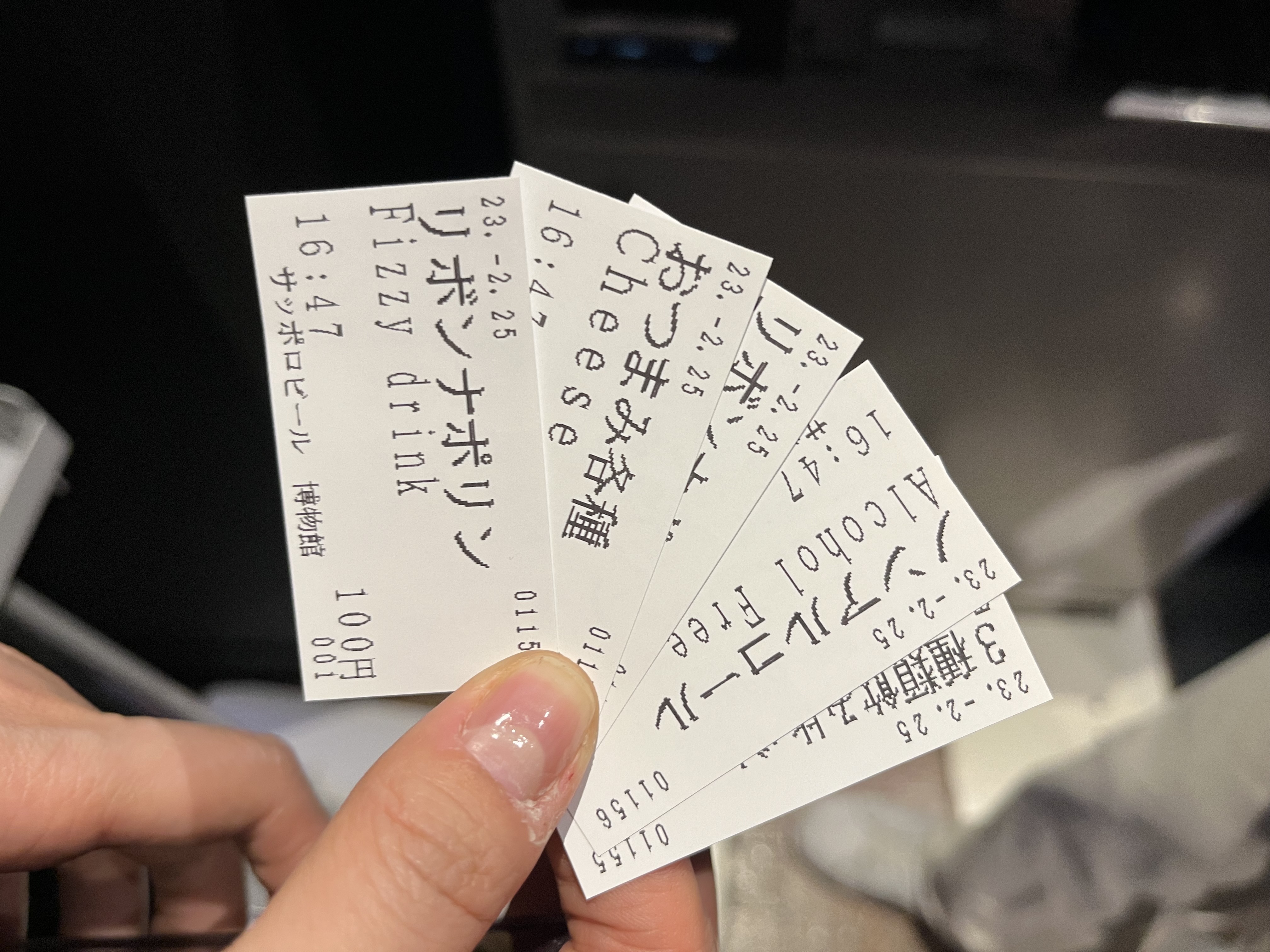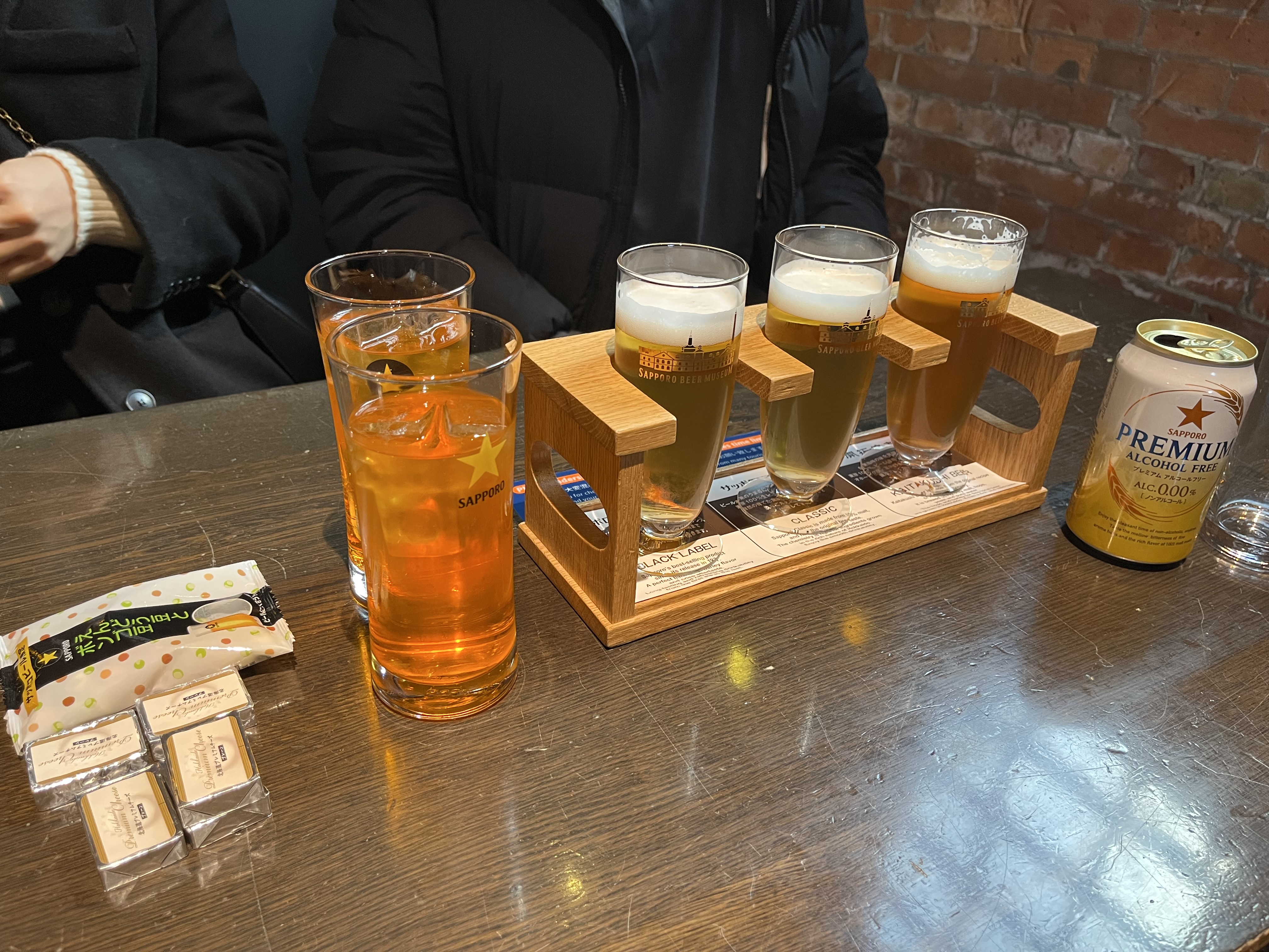 모든 음료를 다 한번씩 시음해보았다. 술잘못인 나도 어떤 것이 맛있는 맥주인지는 잘 몰라도 어떤 것이 맛이 없는 맥주인지는 확실히 알 수 있었다. 논알콜 맥주가 제일 맛이 없었다. 다른 맥주들에 비해 떫고 밋밋한 맛이랄까. 다른 맥주들은 조금씩 맛의 차이는 있었지만 결론적으로 내게는 '술맛'이었다. 안주로 먹으라고 함께 나온 치즈가 내 입맛에 제일 들어맞았다. 같이 시킨 음료수는 어딘가 익숙한 맛이 났는데 우리나라의 미에로 화이바 비슷한 맛이었던 것 같다.