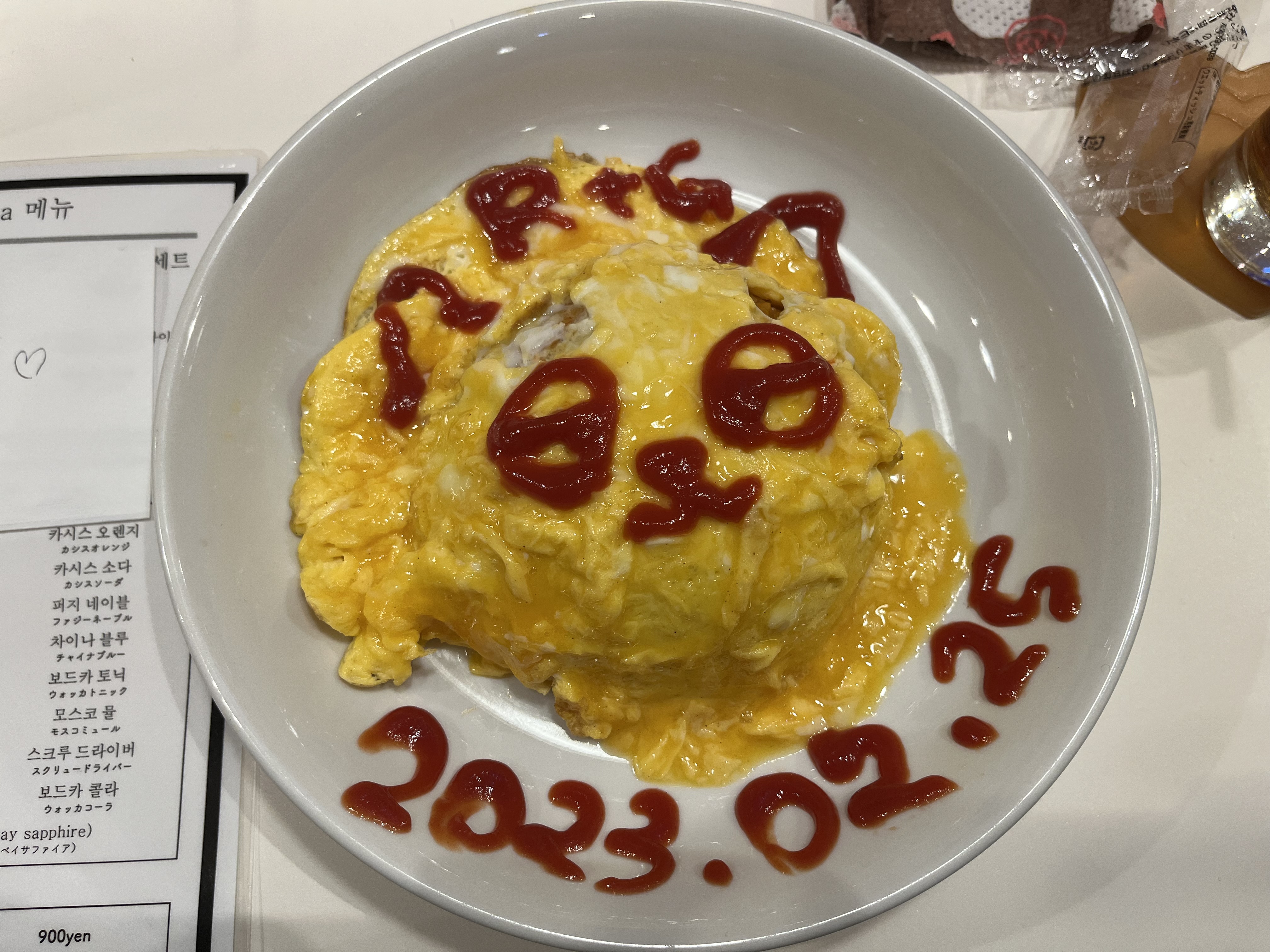 한국인들도 많이 왔었는지 한국어로 메뉴가 적혀있었다. 그림 그리기 오므라이스 2개와 음료를 시켰다. 음식이 나왔을때는 다같이 주문을 외웠는데(ㅋㅋ) 엄청 민망할거라 생각했는데 예상외로 안에 있는 모든 사람이 다같이 동시에 주문을 외쳐줘서 나름 할만했던 것 같다.