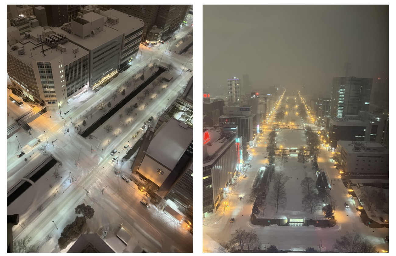 삿포로 TV 타워 전망대에서 내려다본 삿포로 시내. 여행 내내 눈이 와서 그런가 온통 새하얀 겨울왕국이다.