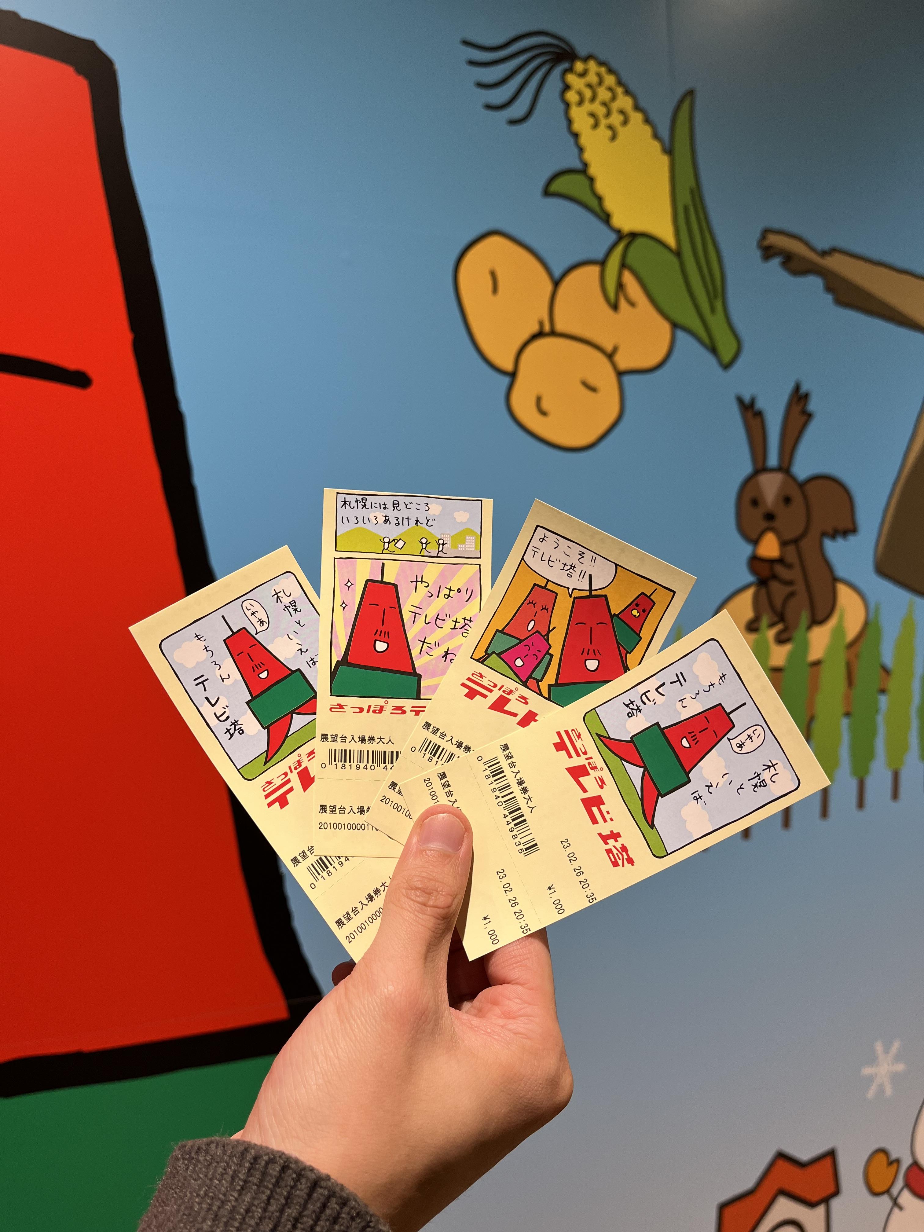 입구에 들어가면 전망대에 올라갈 수 있는 입장권을 끊을 수 있는데, 입장권에 삿포로 TV 타워 캐릭터가 그려져있는게 귀엽고 아기자기하다. 캐릭터가 꼭 수박 같이 생겼다.