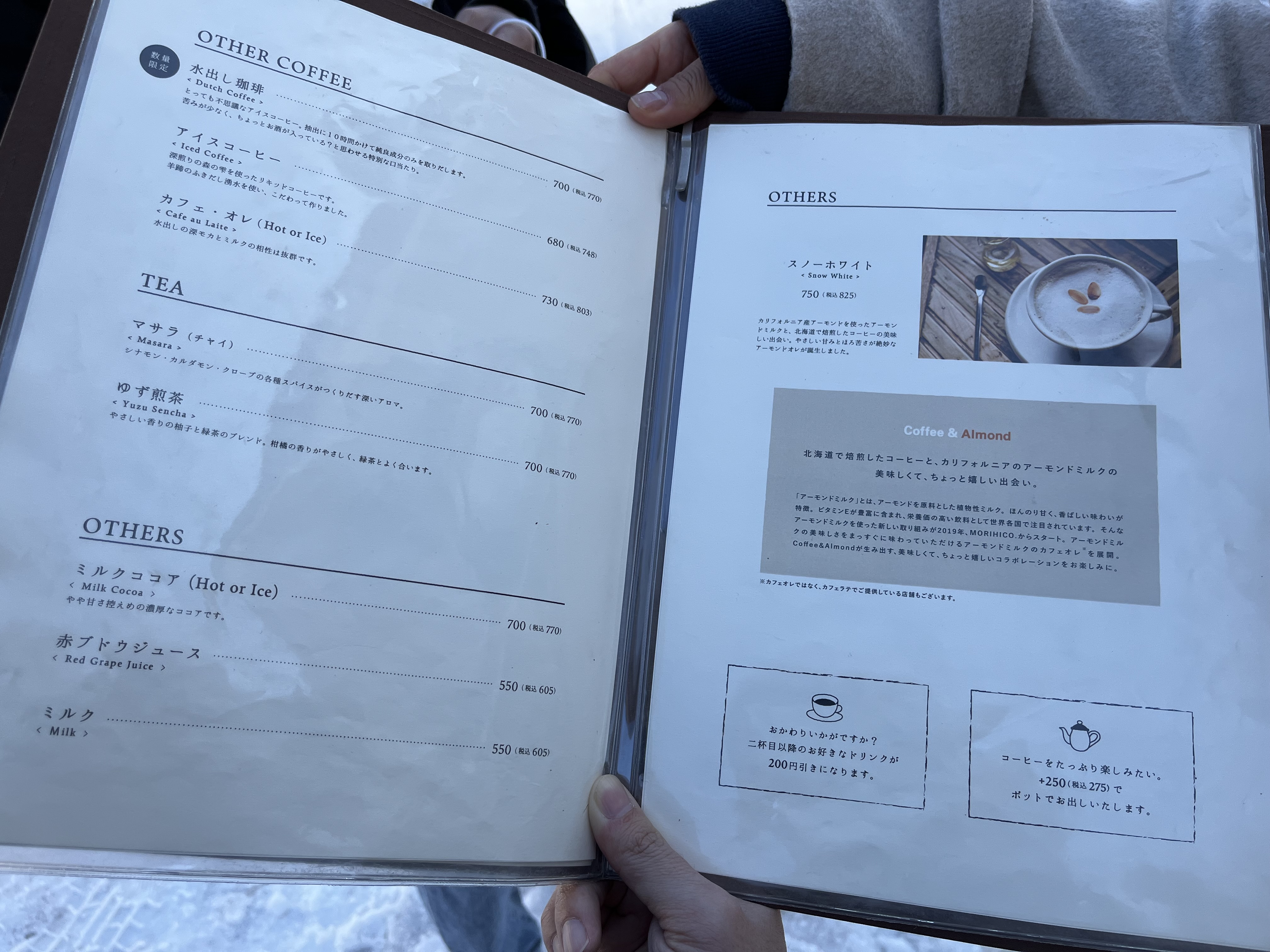 스프카레를 배부르게 먹고, 미리 찾아두었던 카페로 향했다. '모리히코'라는 곳인데 카페의 분위기가 겨울과 딱 어울리는 분위기라 꼭 한번 가보고 싶었다. 거리가 좀 있어서 스아게플러스에서 차를 타고 카페로 이동했다.