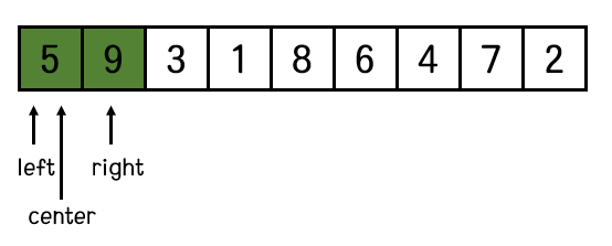 이제, left = 0, right = 2 인 범위를 정렬해보자.