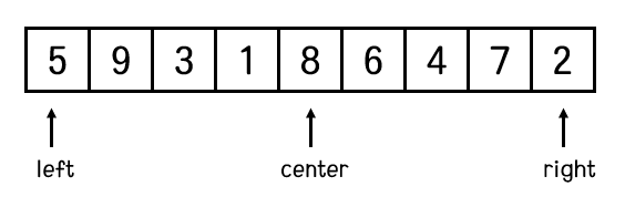 그리고 center = (left + right) / 2 가 되어 center가 배열의 중앙 인덱스를 담도록 한다.