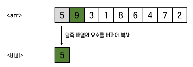 버퍼를 생성하고 앞쪽의 배열 값들을 버퍼에 옮겨담는다.
