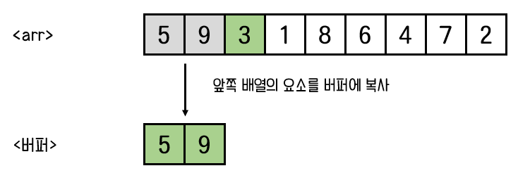 그 다음, 앞쪽의 배열의 요소를 모두 버퍼에 담는다.