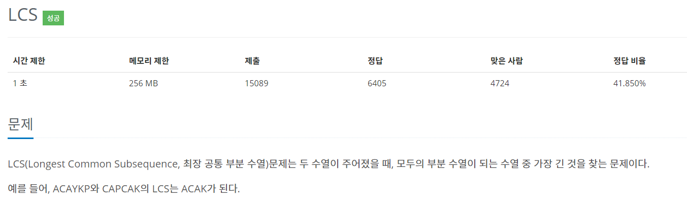 첫번째 문자열에서 i번까지의 문자열과 두번째 문자열에서 j번까지의 문자열의 LCS를 구한 값이 들어가게 된다.