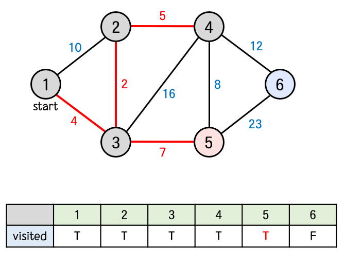 2. 그런데 5번 정점은 이미 방문이 완료된 상태이다.