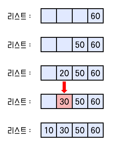 입력받은 수를 리스트의 알맞은 위치(idx)에 넣은 후(여기까지는 이전 글에서의 알고리즘과 동일하다.)