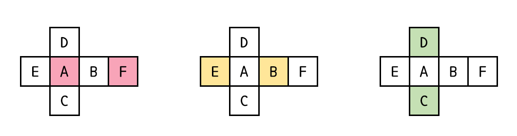 그러므로 마주보는 면인지 아닌지 확인한 후, 마주보는 면이 아니면 두 합을 구하고 더 작은 합이 나오면 계속 갱신해나간다.
