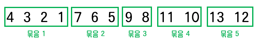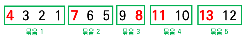 또한 한 묶음안에는 최대 K개만큼의 수만 들어있으며, 하나의 묶음 내에서는 내림차순 정렬이기 때문에,