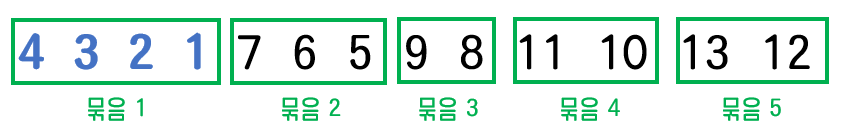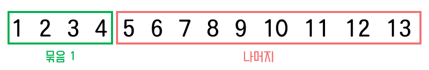 (이 예시에서는 나머지가 한 개뿐이므로 하나의 묶음에 넣어주면 끝이다.)