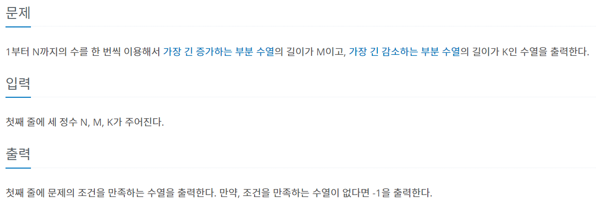 즉, M + K 가 N + 1일 때가 최소이며, 만약에 M + K가 N + 1보다 크다면 문제의 조건을 만족시킬 수 없다.