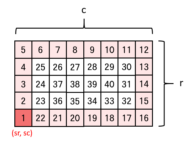 (sr, sc)는 한바퀴에서 첫번째 시작하는 좌표를 의미하고, r은 세로 길이, c는 가로 길이를 의미한다.